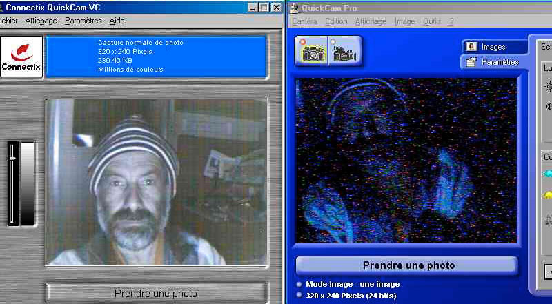 | Images de comparaison de sensibilité entre une Qcam VC (gauche) et une Qcam pro (droite) | Sylvain Weiller | |