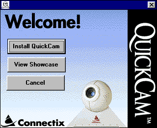 La caméra est livrée dorigine avec deux logiciels de prises de vue, QuickMovie pour l'enregistrement de film vidéo et QuickPict pour la capture dimages fixes (en anglais). Linstallation du logiciel est très simple, il suffit dinsérer le CD-ROM et de suivre les recommandations dinstallation.
